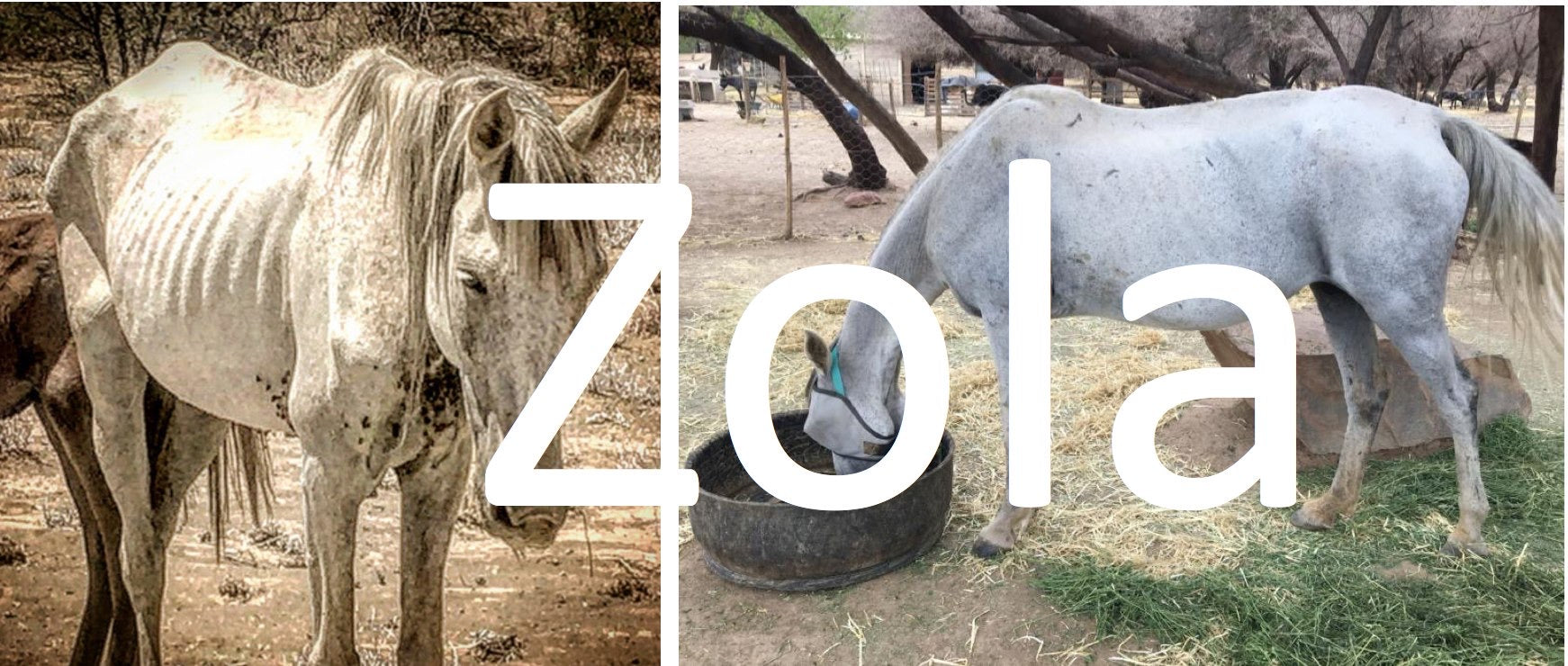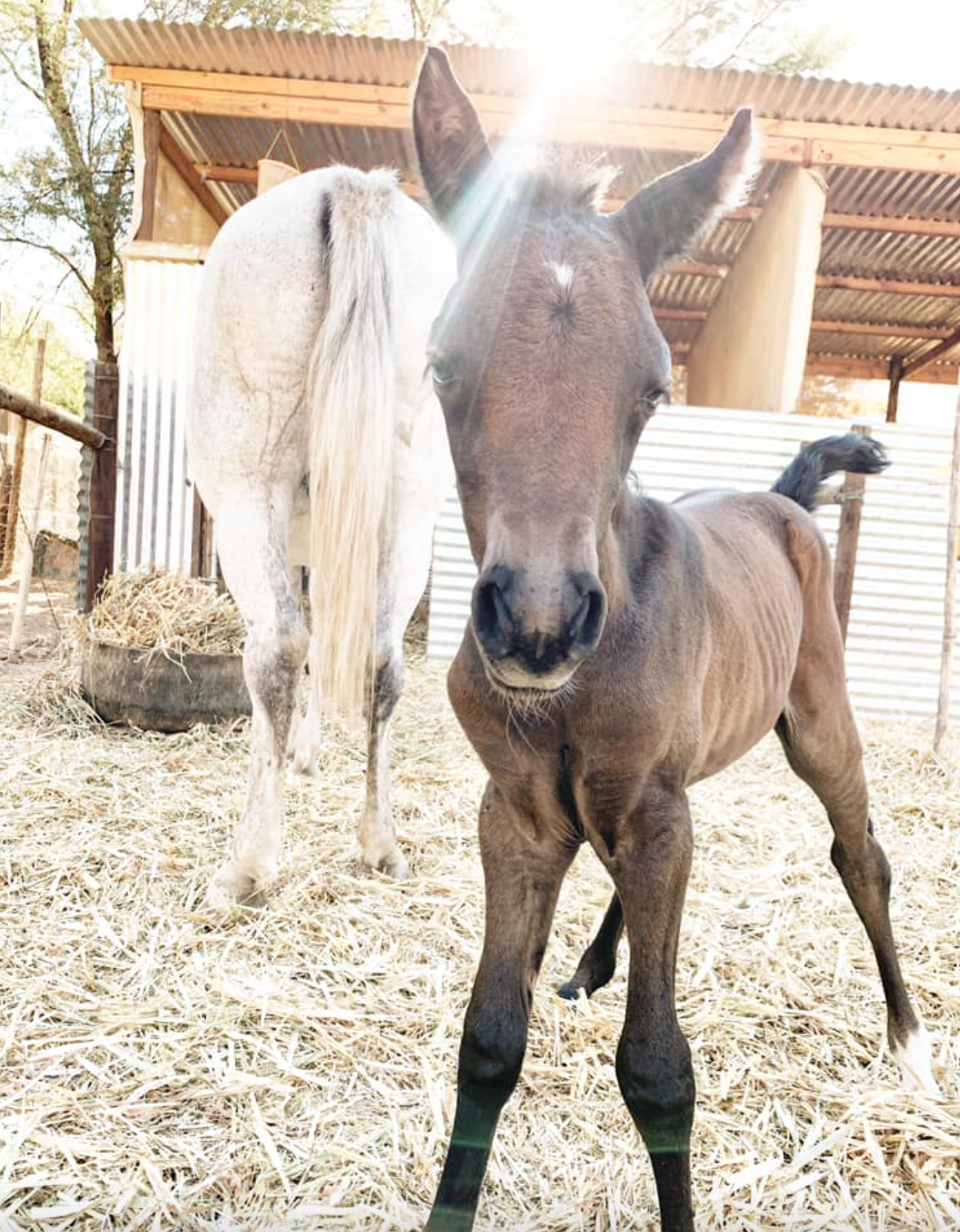 With the assistance of our equine network in Prince Albert, we found Zola with a young foal at foot out in the rough Karoo veldt, many miles. The pair were without food and water, covered in flies, and at the mercy of the elements. We uplifted this mum and baby, and relocated them to the sanctuary where they received extensive critical care from our dedicated rehabilitation team. Surprise! We soon realized that Zola have was also pregnant! 11months later, she gave birth to a beautiful baby boy. Zola and her two boys are part of our fabulous mega herd, and as with most animals, are still very bonded.