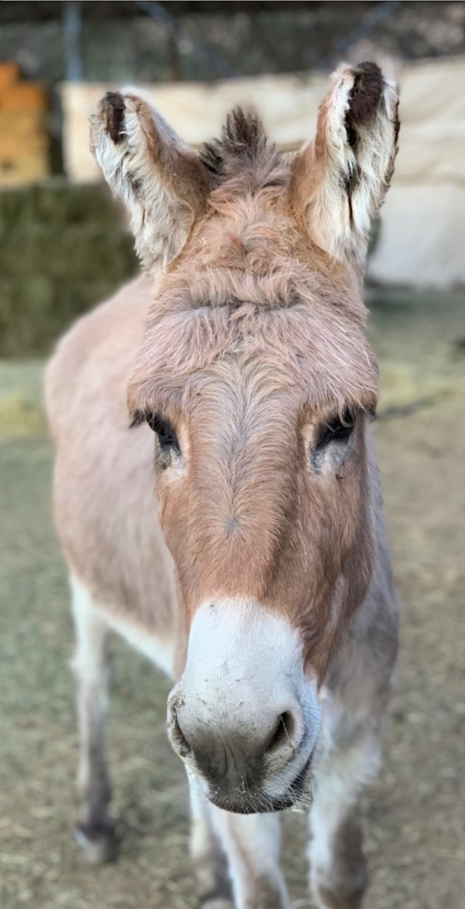 "Guard Donkeys" are used to protect flocks of sheep from predators in farming settings. As with so many working animals, guard donkeys are often neglected receiving no supplementary nutrition, shelter or farrier care - this is the story of our Meisie. Following years of neglect guarding sheep on a farm in the Ceres region of South Africa, little Meisie had developed ’slipper-feet’ and she could no longer walk. We drove across the country to collect Meisie, who was later surrendered into our care. Ongoing remedial farrier work and special nutritional care were top priority for our girl, and despite her tough life she had so much love to give. The bones in her feet have partly disintegrated, meaning that our beautiful Meisie is a core member of our Special Care Unit - gracefully living out her remaining days with her companion, our fully blind donk Stevie Wonder. Visit Meisie, Stevie wonder and the rest of our ICU herd on one of our tours.